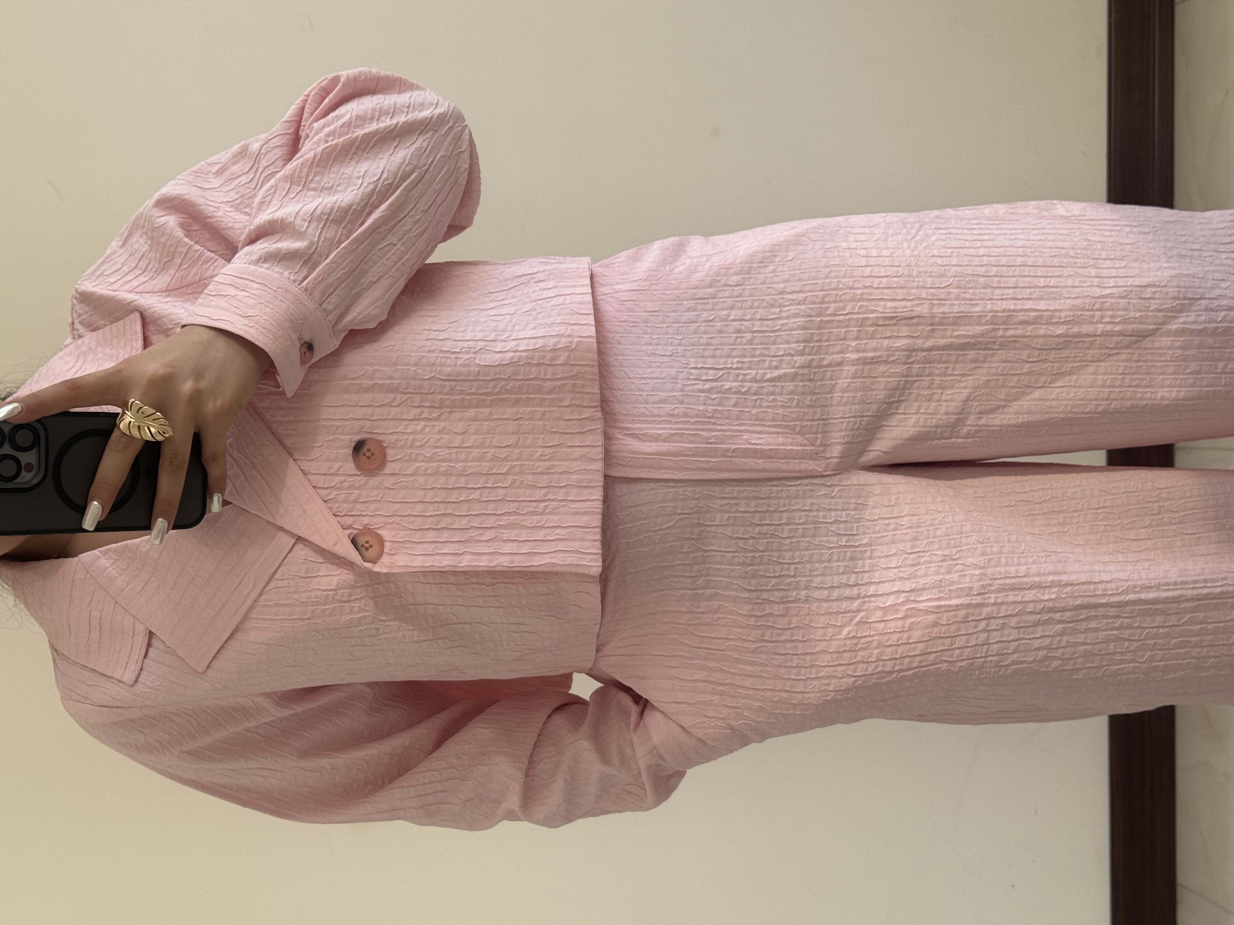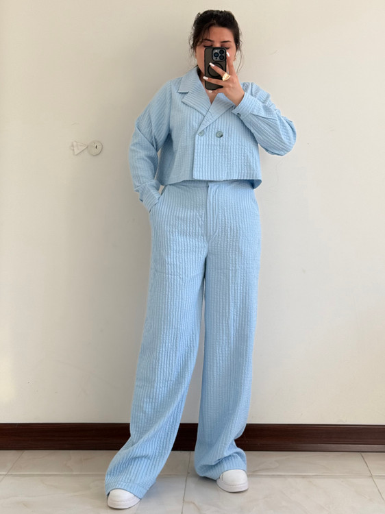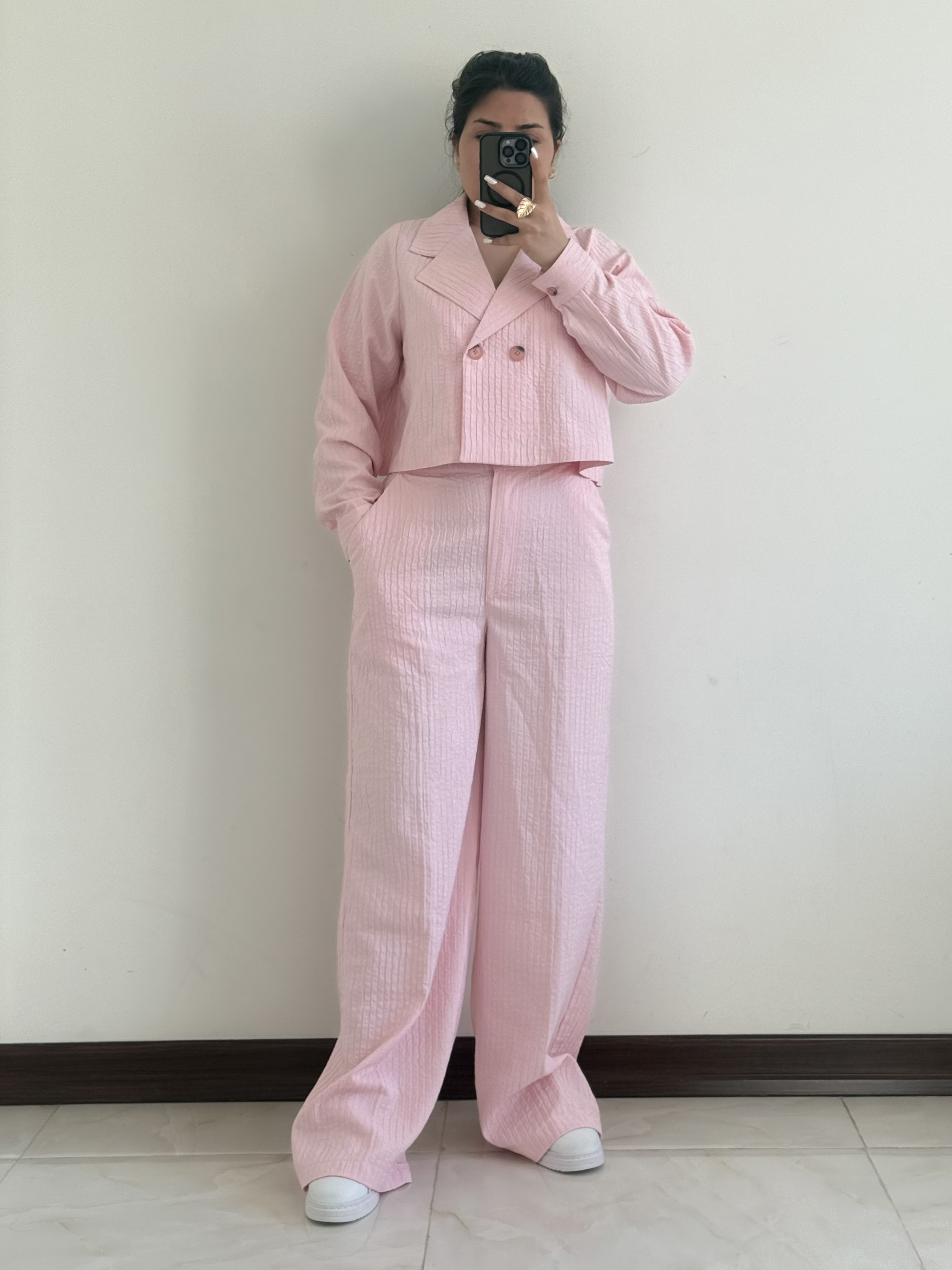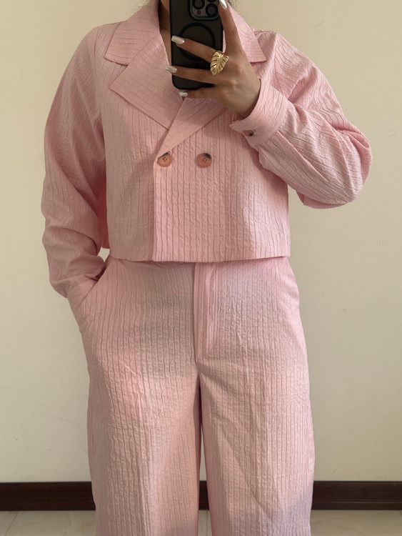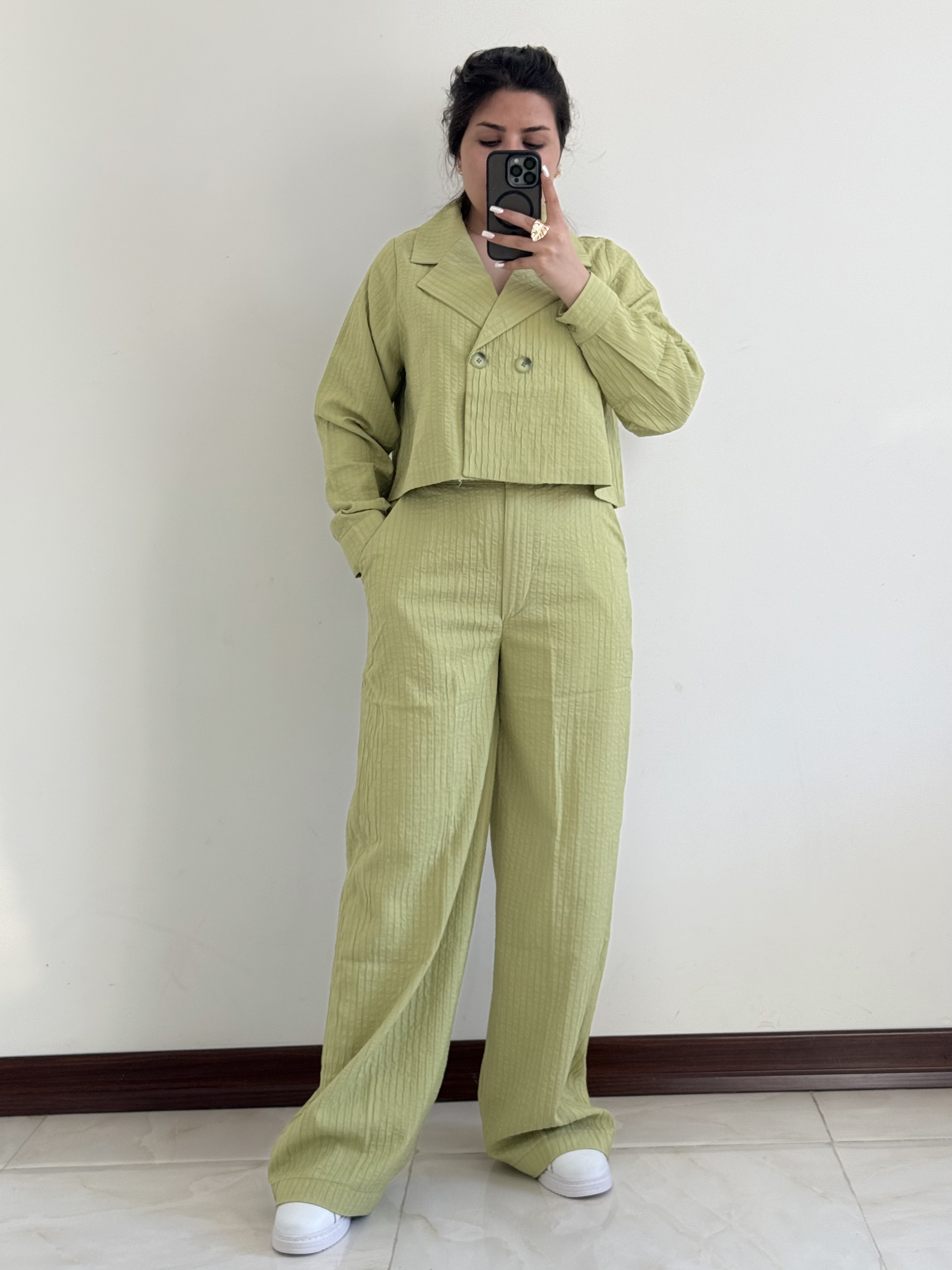 ست کراپ کت و شلوار زنانه جنس پفکی بهاره