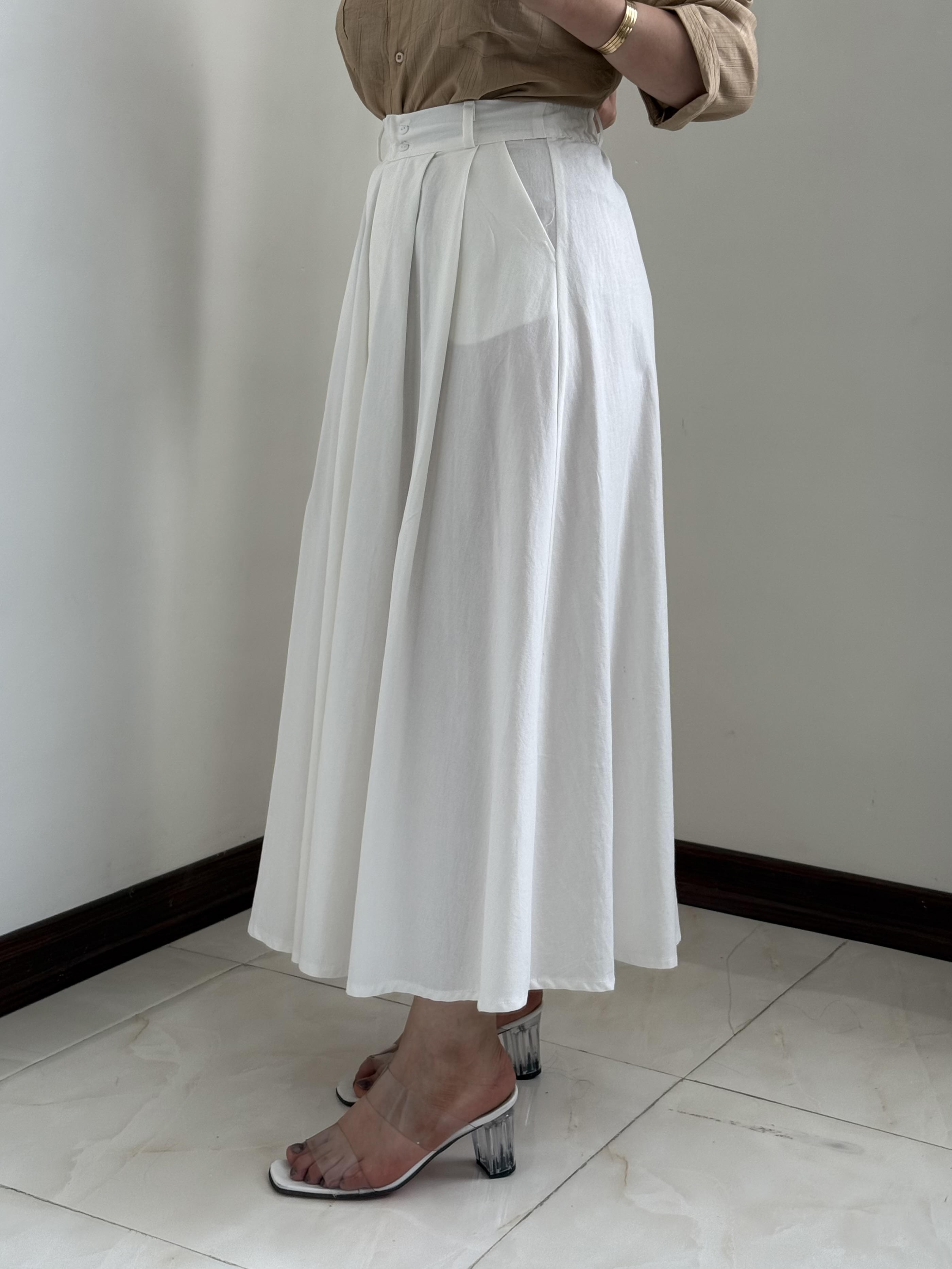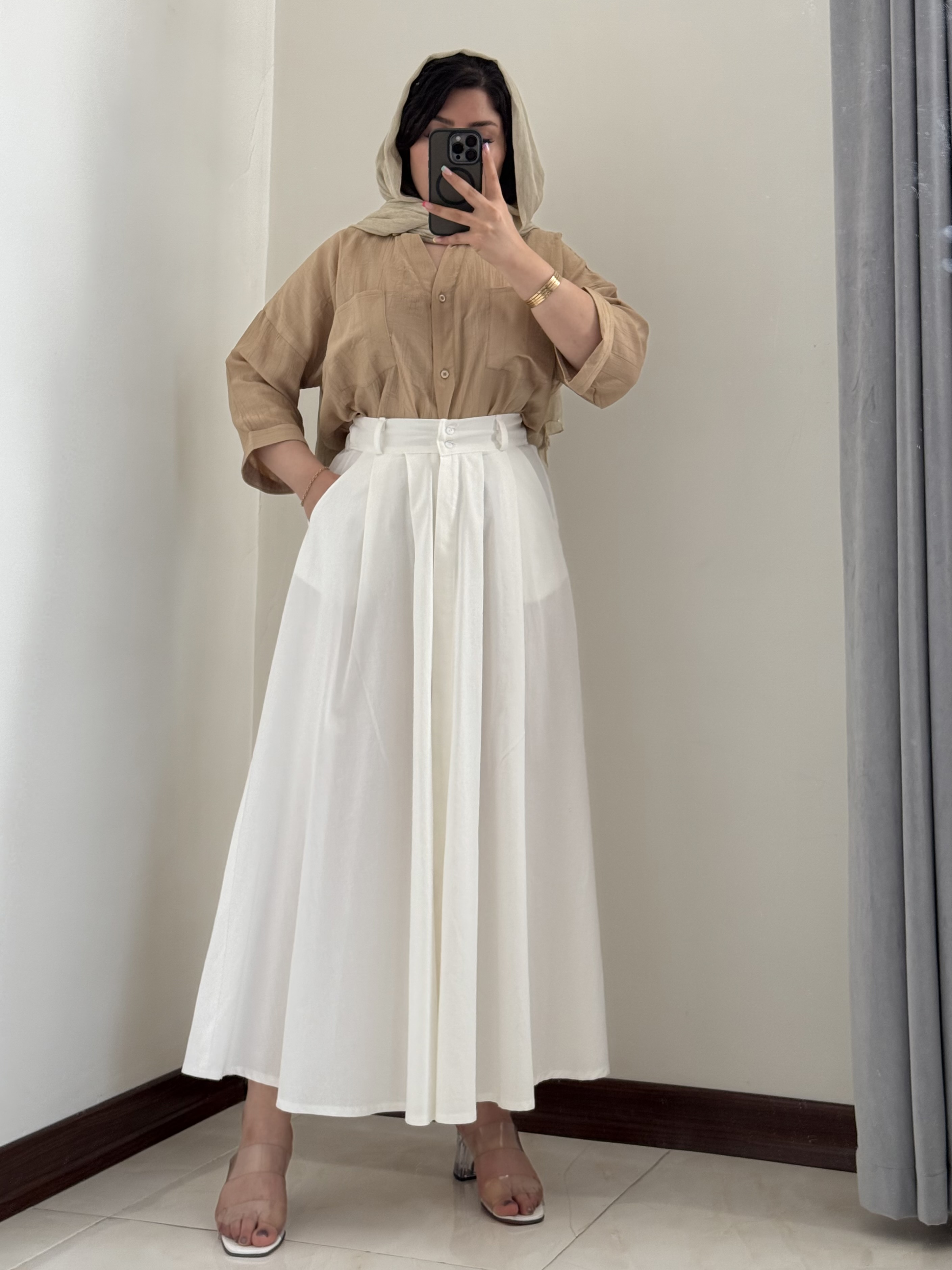 دامن بلند دکمه مخفی زنانه جنس لینن