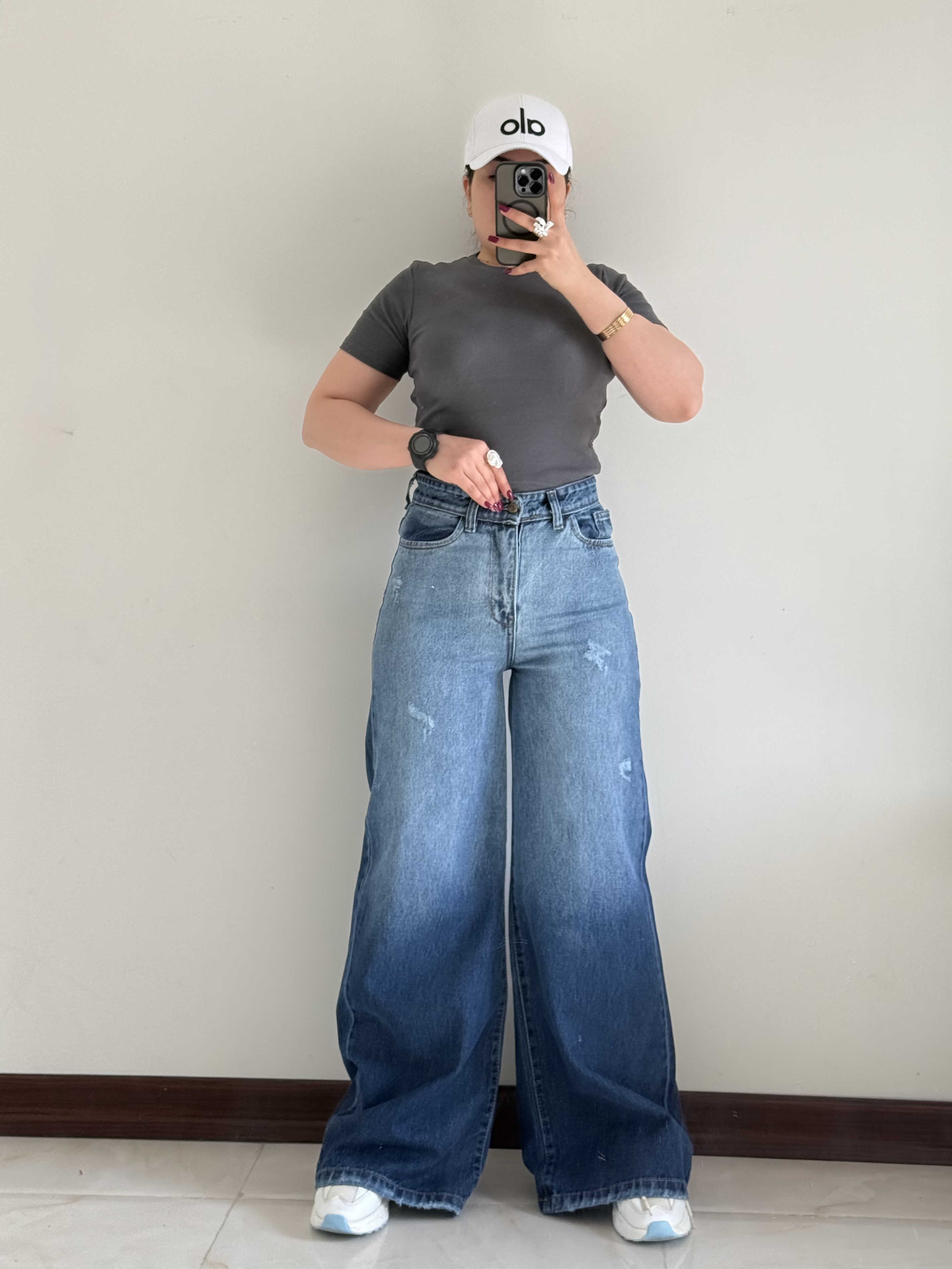 Women's full-bag shaded denim pants