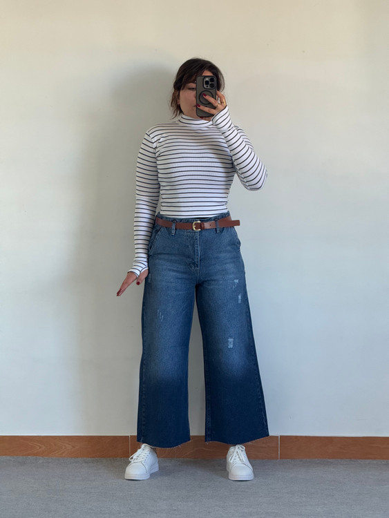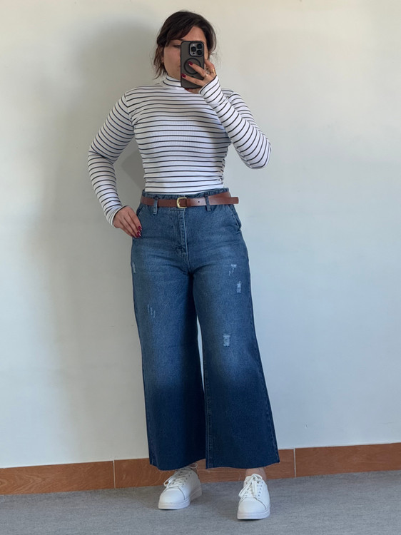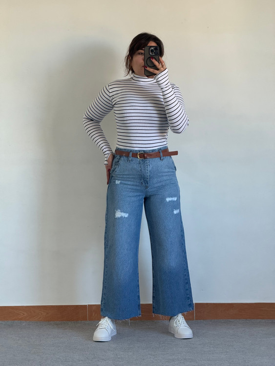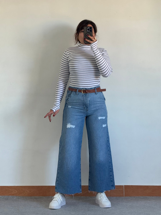 شلوار واید لگ جین زنانه پایین کات